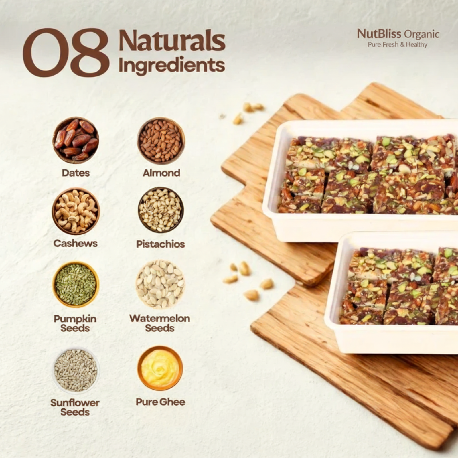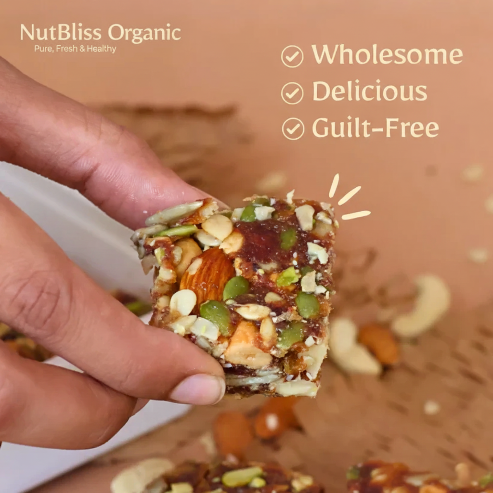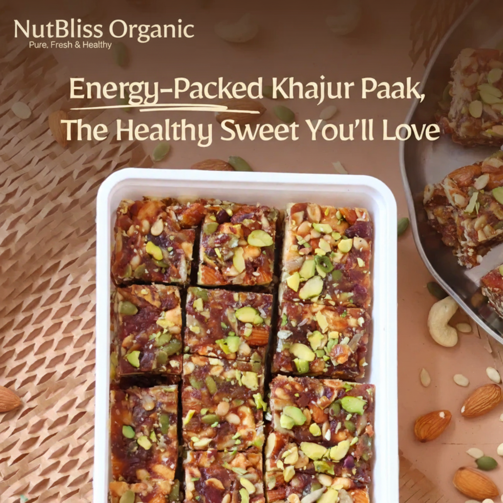 Perfect with tea, for office breaks, or while traveling – Nutbliss Organic Khajur Pak will become your favorite healthy companion. Give it a try!